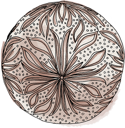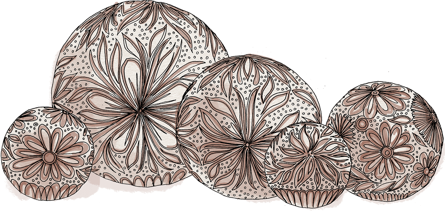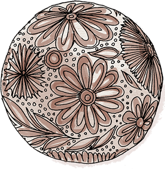 3.Commence alors le délicat travail de sculpture, afin d'orner la surface de la boule de motifs propres à l'artiste sculpteur.